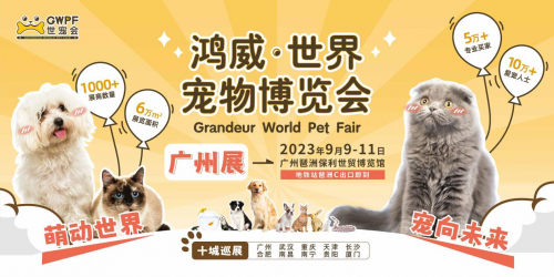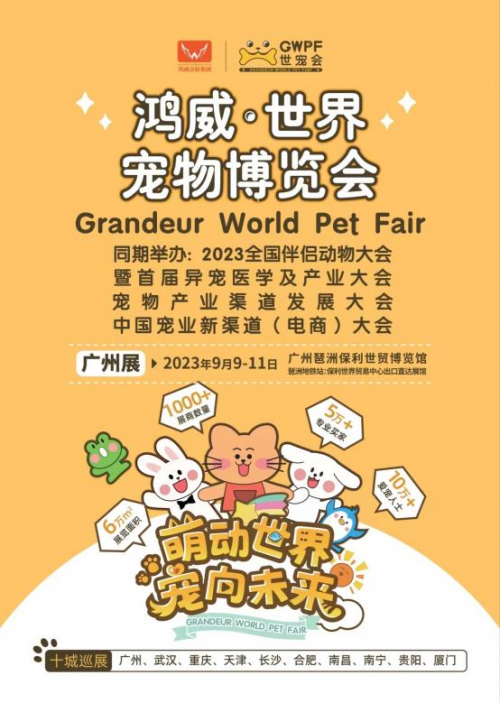 2023年9月9日-11日,廣州保利世貿(mào)博覽館,10萬+愛寵人士和5萬+采購商都會來的鴻威?世界寵物博覽會(GWPF世寵會),熱忱期待您的加入,和我們一起見證國內(nèi)寵業(yè)品牌的誕生與成長,多城聯(lián)動,商貿(mào)交流,對話全球,加速國際化戰(zhàn)略進程,共筑引領(lǐng)世界風(fēng)向的寵業(yè)新標(biāo)桿!